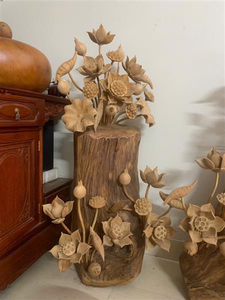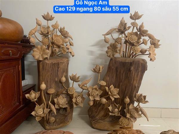 Bình Hoa Sen Gỗ Ngọc Am cao 129 cm, Bình Sen Gỗ Ngọc Am Nặng từ 67-80 kg/một bình