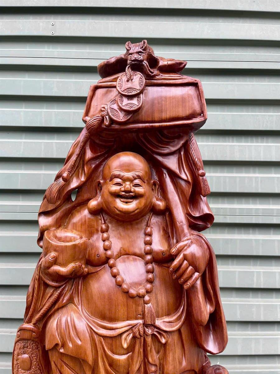 Thanh Lý Tượng Di Lặc Gỗ Ngọc Am Liền Nguyên Khối, Chỉ Hơn 3 Triệu Là Sở Hữu Một Bức Tượng Di Lặc Gỗ Ngọc Am Cao 95 Cm