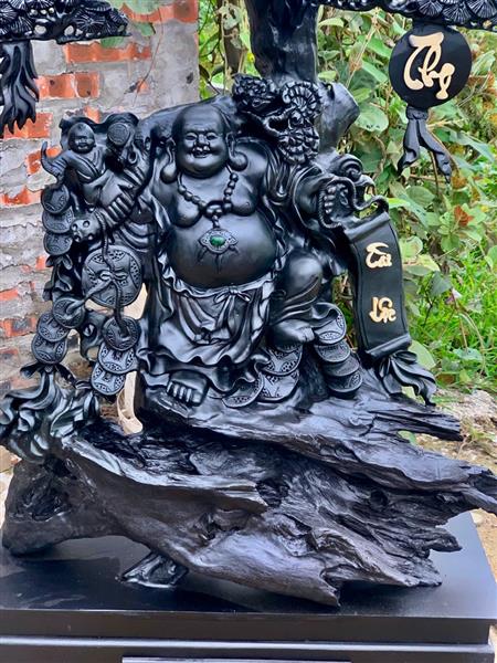 Tượng Di Lặc Đứng GốcTùng Gỗ Mun Sừng Khánh Hòa, Tượng Phật Di Lặc Gỗ Mun Sừng Khánh Hòa