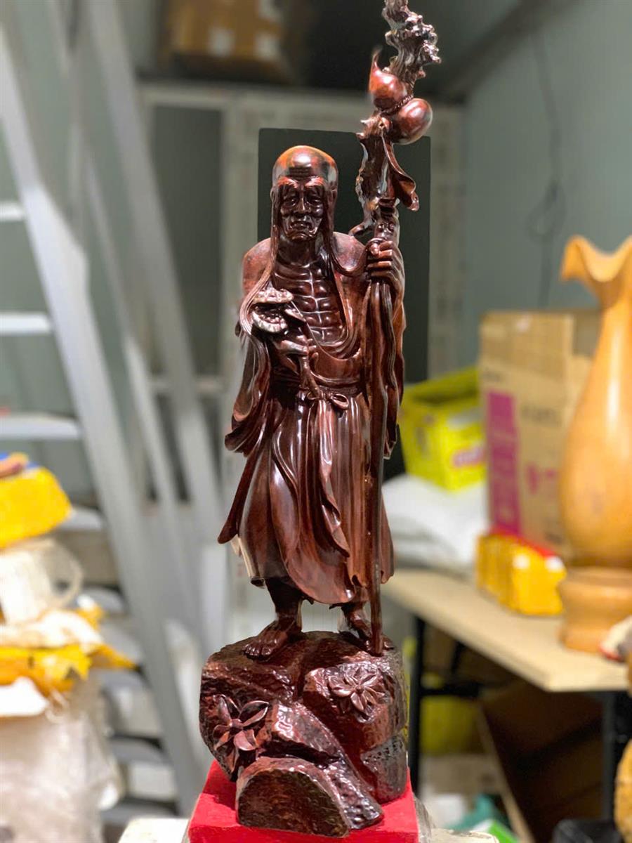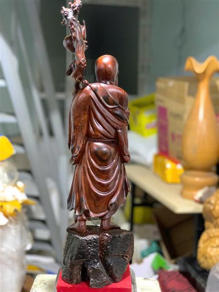 Chế tác: Tượng được đục thủ công tỉ mỉ 100% bởi nghệ nhân lành nghề, đường nét rõ ràng, thần thái sống động, ánh mắt hiền từ, thể hiện trọn vẹn “hồn tượng” của bậc La Hán tu hành đắc đạo