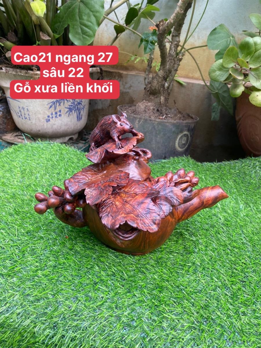 Ấm Tích Nho Sóc Độc Lạ Gỗ Sưa Bắc Liền Nguyên Khối