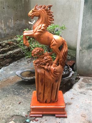 Tượng Ngựa Phong Thủy, Tượng Ngựa Đơn Đứng Tùng Gỗ Hương