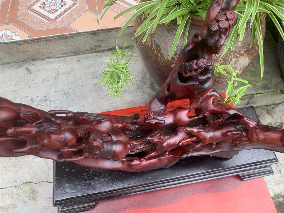 Tượng Bát Mã Truy Phong Gỗ Trắc, Tượng Bát Mã Phi Thiên Gỗ Trắc Liền Nguyên Khối, Tượng Bát Mã Phong Thuỷ Gỗ Trắc Đỏ Đen