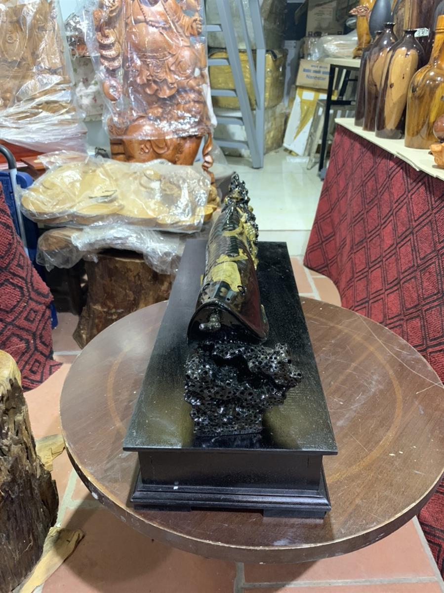 Tượng Cá Kim Long Tài Lộc Gỗ Mun Sừng Liền Khối, Cá Kim Long Gỗ Mun Sừng Quý Hiếm