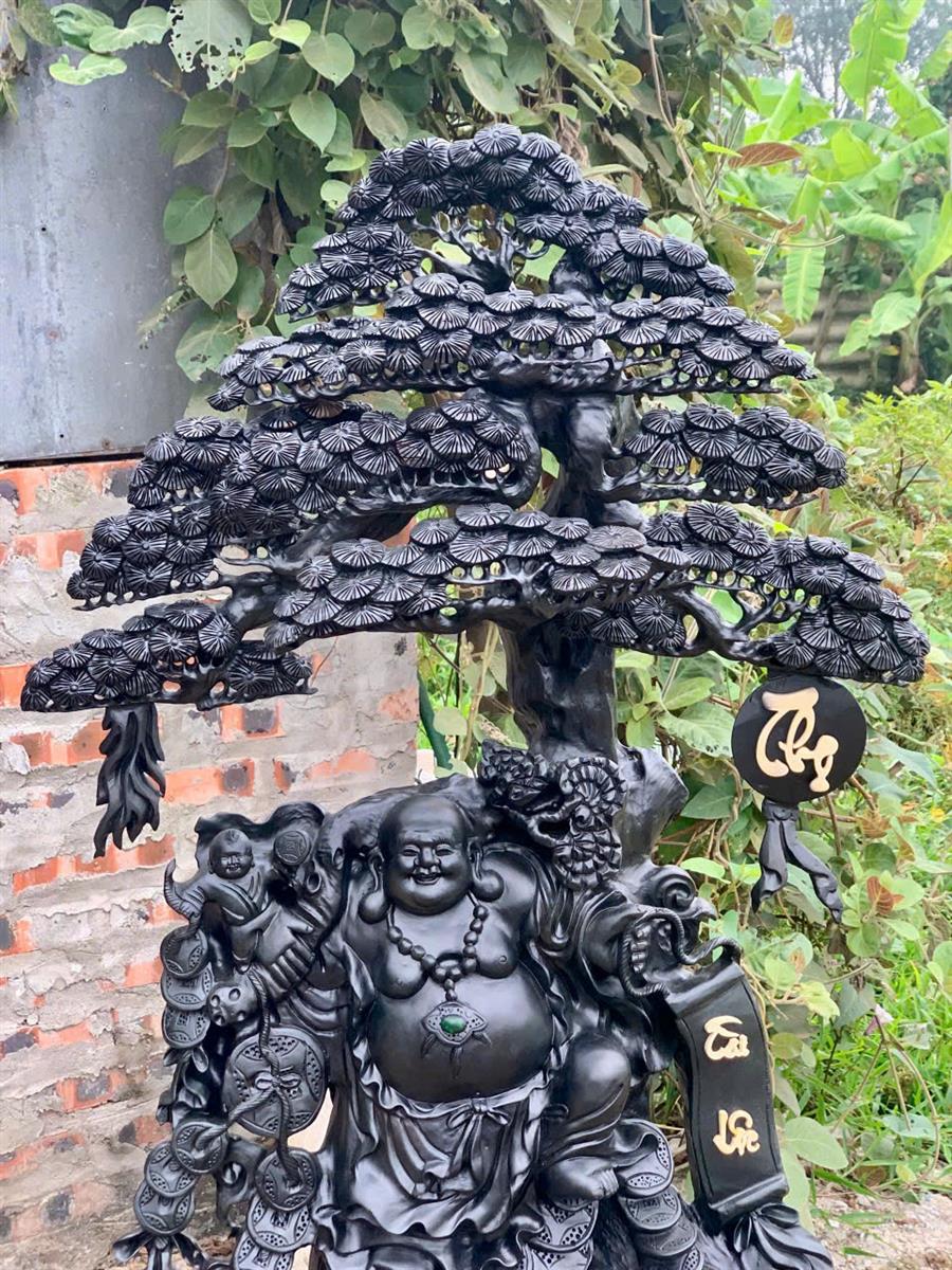 Tượng Di Lặc Đứng GốcTùng Gỗ Mun Sừng Khánh Hòa, Tượng Phật Di Lặc Gỗ Mun Sừng Khánh Hòa