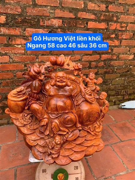 Tượng Di Lặc Ngồi Gánh Đào Gỗ Hương, Tượng Phật Di Lặc Ngồi Cùng Tam Tiểu Đồng Trên Núi Tiền Vàng