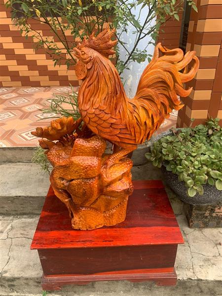 Tượng Gà Trống Gỗ Hương Việt, Tượng Nhất Kê Tài Lộc, Tượng Kim Kê Phong Thuỷ Gỗ Hương