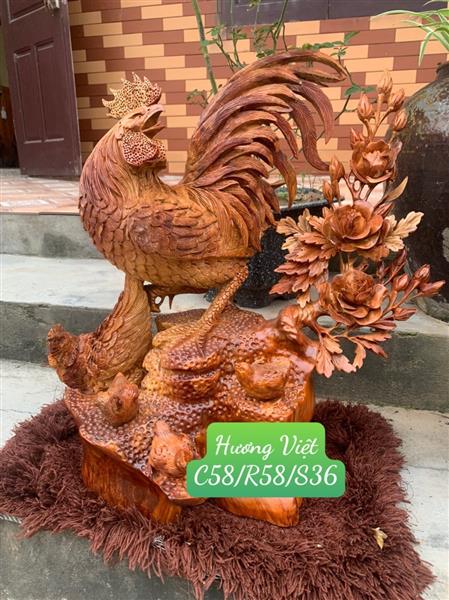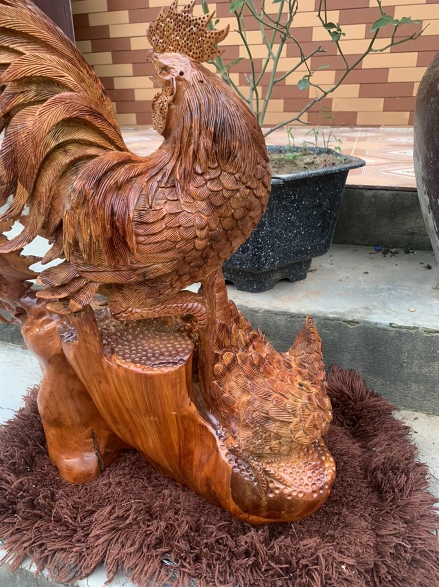 Tượng Gia Đình Gà Gỗ Hương, Tượng Gia Đình Gà Phú Quý Tài Lộc Gỗ Hương