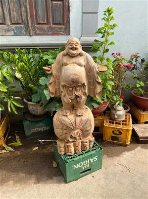 Tượng Phật Di Lặc Gỗ Nu Căm Xe Liền Khối