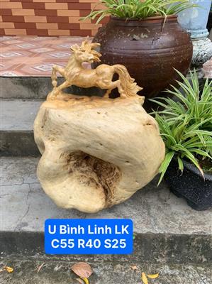 Tượng Nhất Mã Thong Dong Gỗ U Bình Linh Liền Nguyên Khối