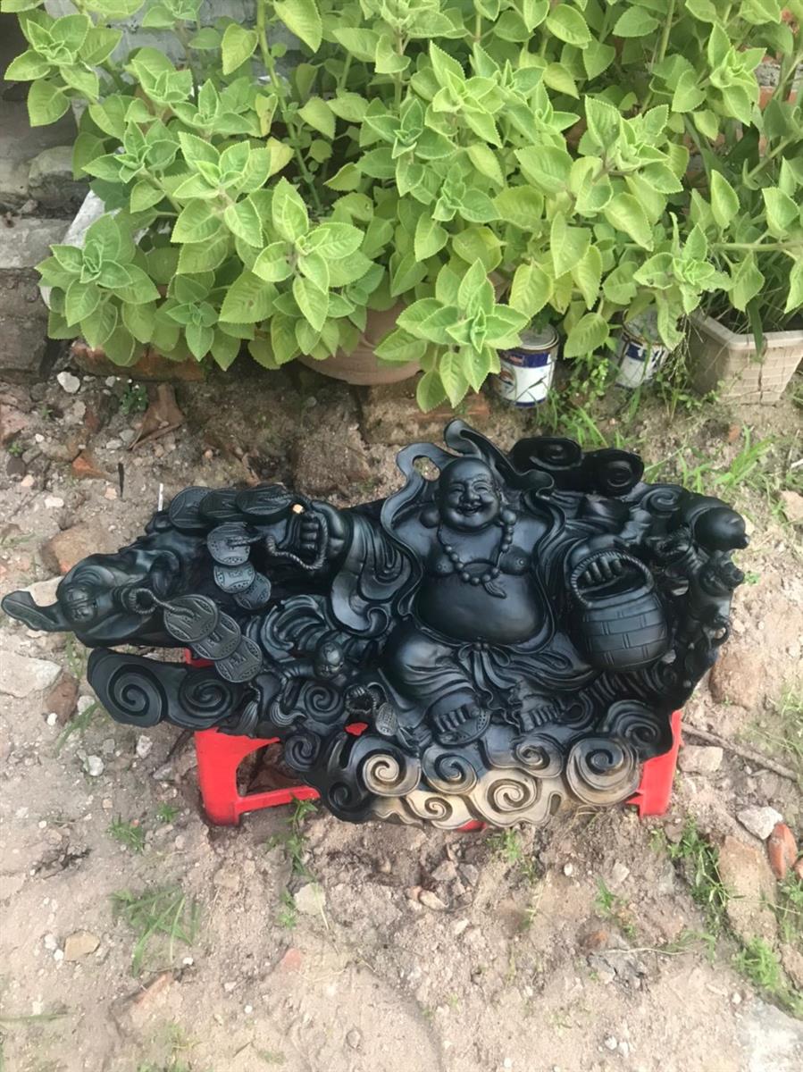 Tượng Phật Di Lặc Gỗ Mun Sừng Khánh Hòa Quý Hiếm, Tượng Di Lặc Gỗ Mun Sừng Ngồi Tam Tiểu Đồng Gỗ Mun Sừng