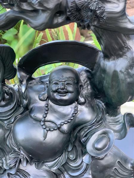 Sự kết hợp giữa Phật Di Lặc và Tùng cổ thụ tạo nên hình ảnh phúc – lộc – thọ – an khang – thịnh vượng, là pháp khí phong thủy giúp thu hút tài lộc, củng cố sự nghiệp và bình an trong gia đình.