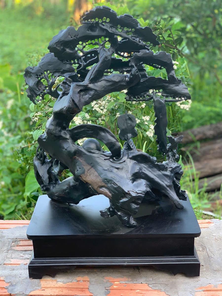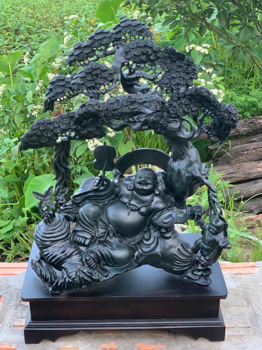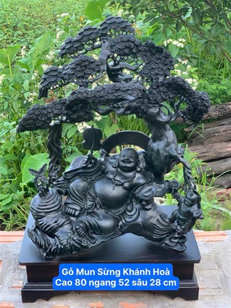 Tượng Phật Di Lặc Gỗ Mun Sừng, Tượng Di Lặc Ngồi Gốc Tùng Cổ Thụ Gỗ Mun Sừng Khánh Hòa