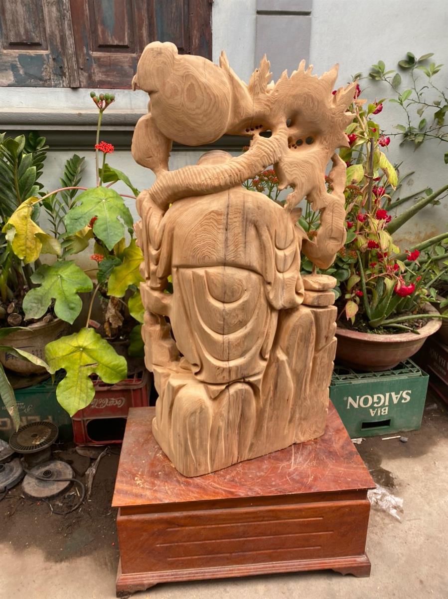 Tượng Phật Di Lặc Gỗ Ngọc Am Liền Khối Thơm Nức, Tượng Di Lặc Tam Phúc Gỗ Ngọc Am Liền Khối