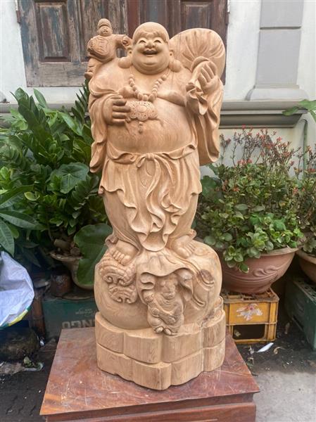 Tượng Phật Di Lặc Gỗ Ngọc Am Liền Khối Thơm Nức, Tượng Phật Di Lạc Đứng Vác Bao Tiền Gỗ Ngọc Am