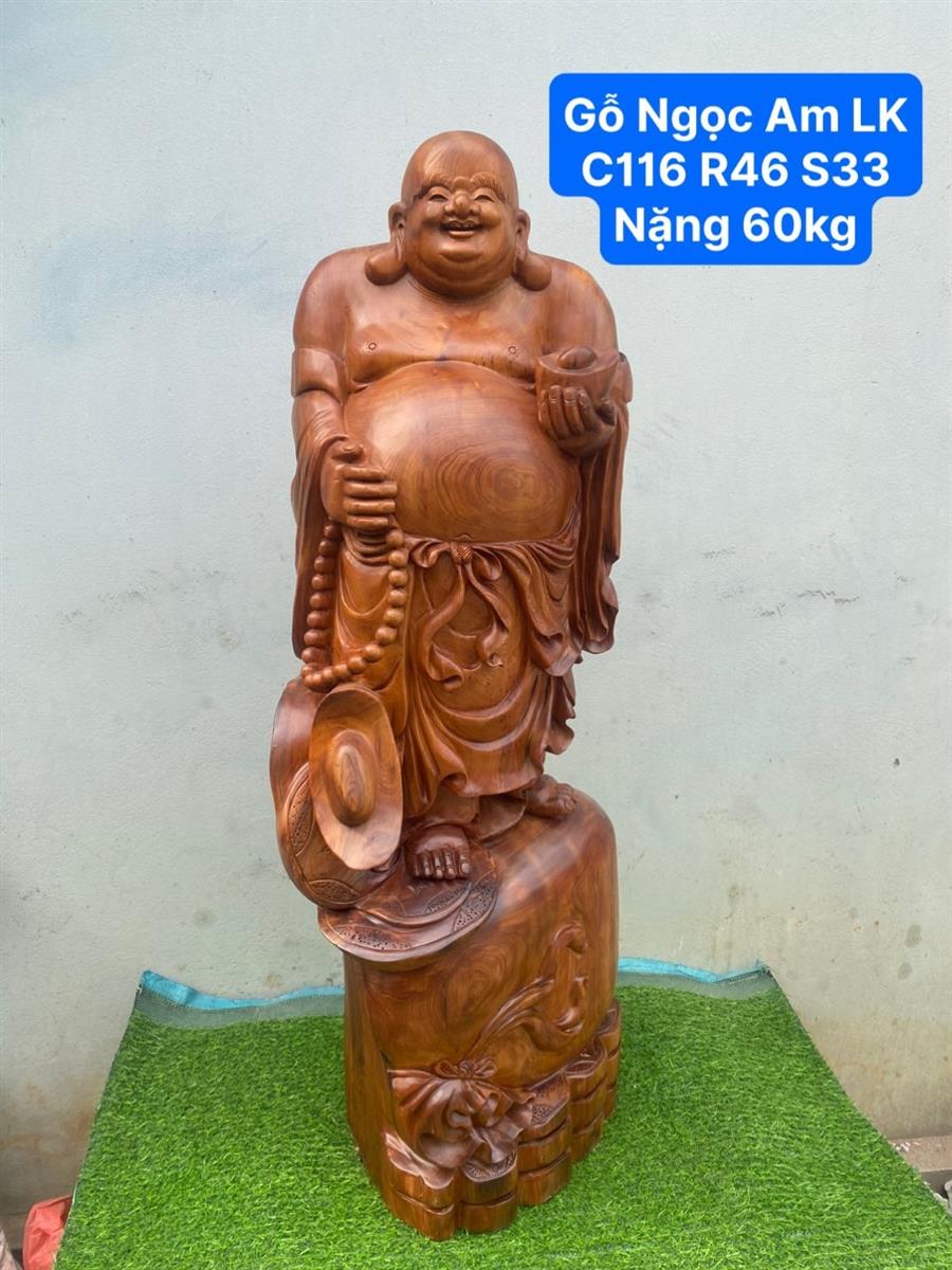 Tượng Phật Di Lặc Gỗ Ngọc Am Liền Khối Thơm Nức, Tượng Phật Di Lặc Tay Cầm Vàng Gỗ Ngọc Am