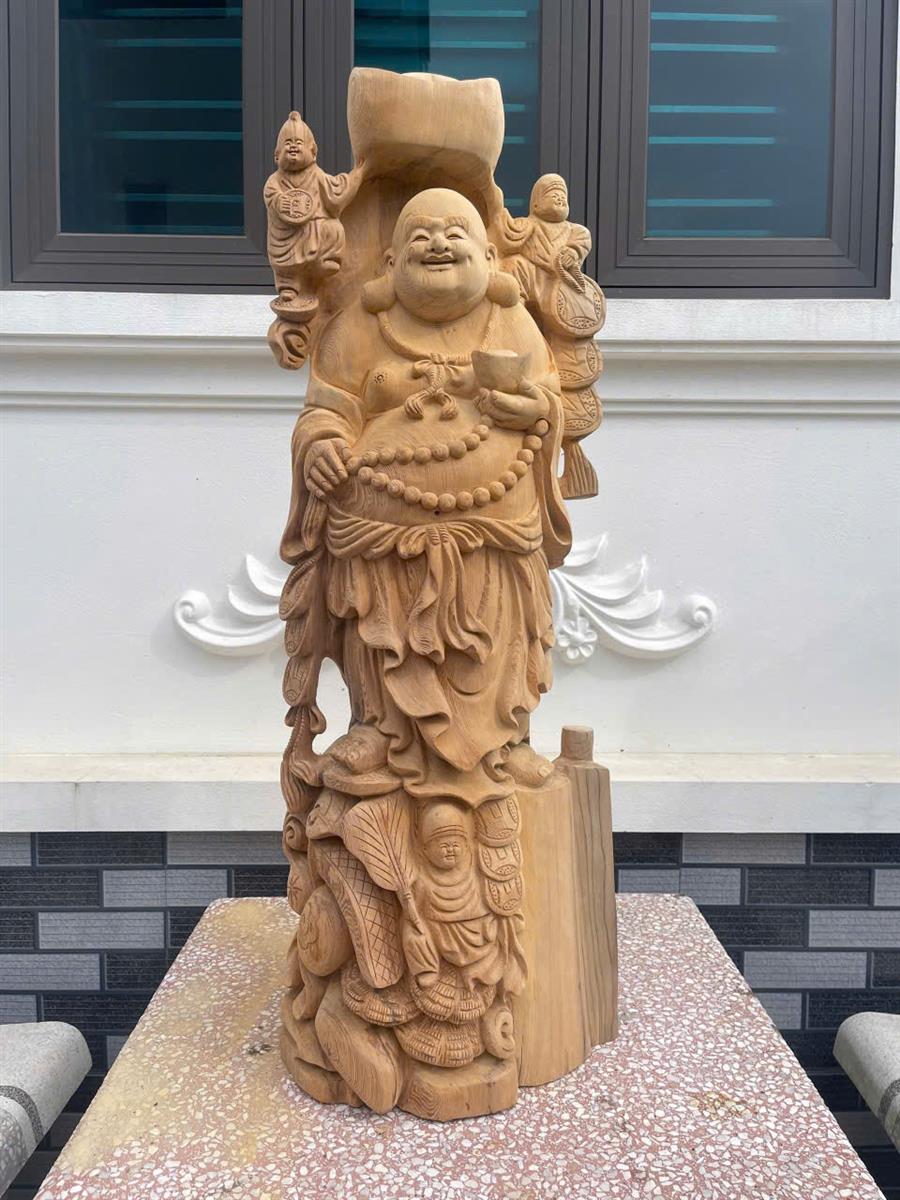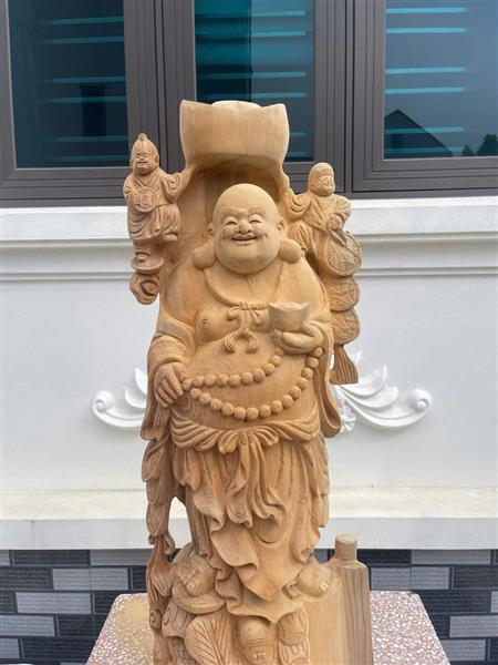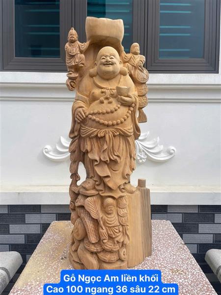 Tượng Phật Di Lặc Gỗ Ngọc Am Liền Khối, Tượng Di Lặc Tam Tiểu Đồng Gỗ Ngọc Am Nguyên Khối Giá Xưởng