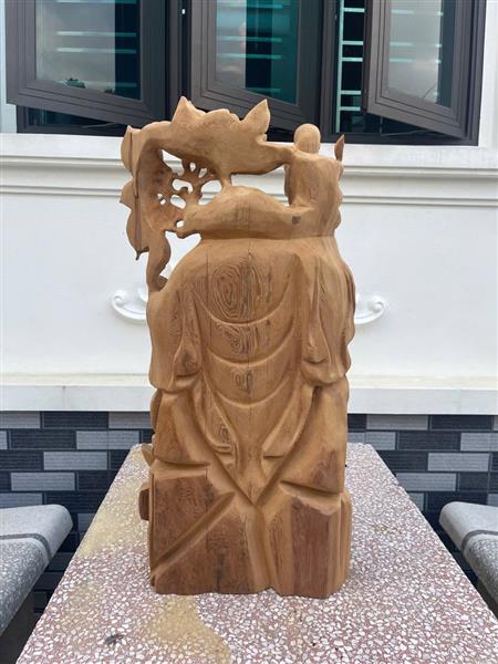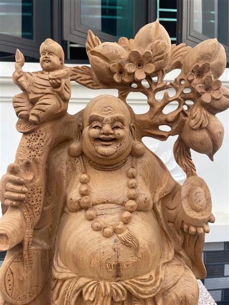 Ý nghĩa phong thủy: Tượng Di Lạc Gánh Đào Gỗ Ngọc Am Liền Khối