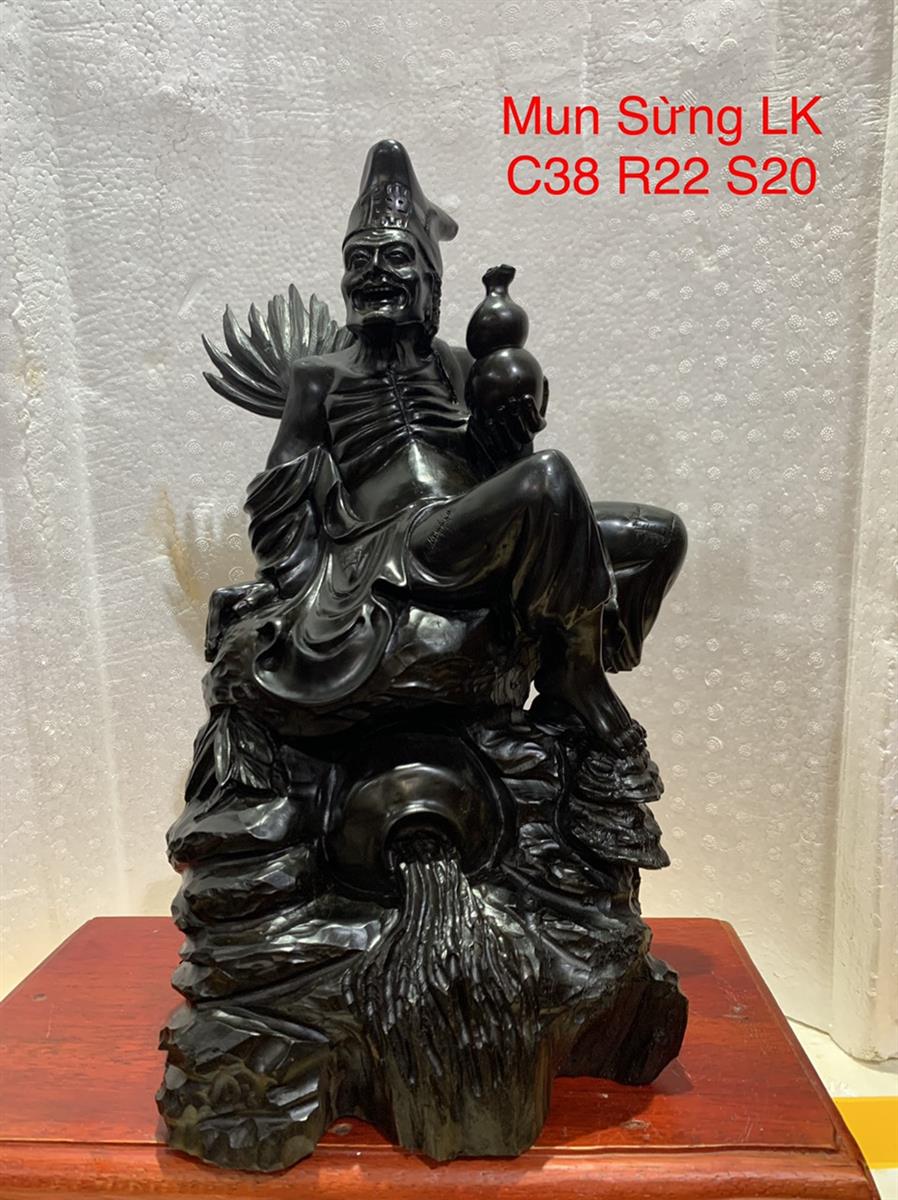 Tượng Phật Sống Tượng Tế Công Gỗ Mun Sừng Liền Khối, Tượng Tế Công Mun Sừng Quý Hiếm