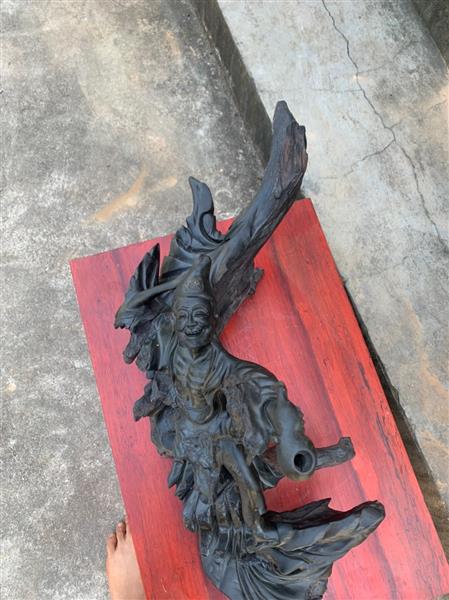 Tượng Phật Sống Tượng Tế Công Gỗ Mun Sừng Liền Khối Xông Trầm